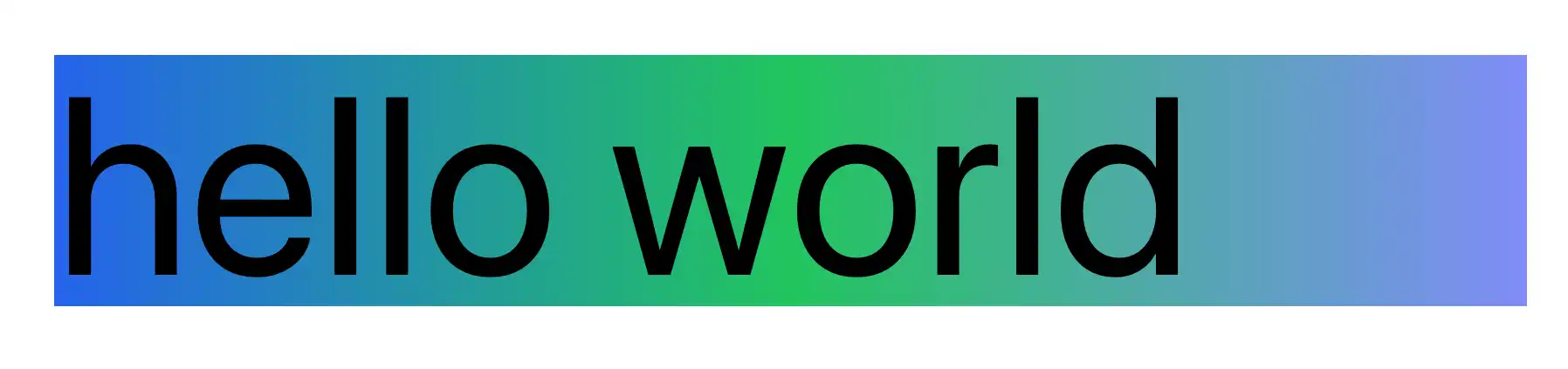 <h1 class="bg-gradient-to-r from-blue-600 via-green-500 to-indigo-400 inline-block text-transparent bg-clip-text">hello world</h1>